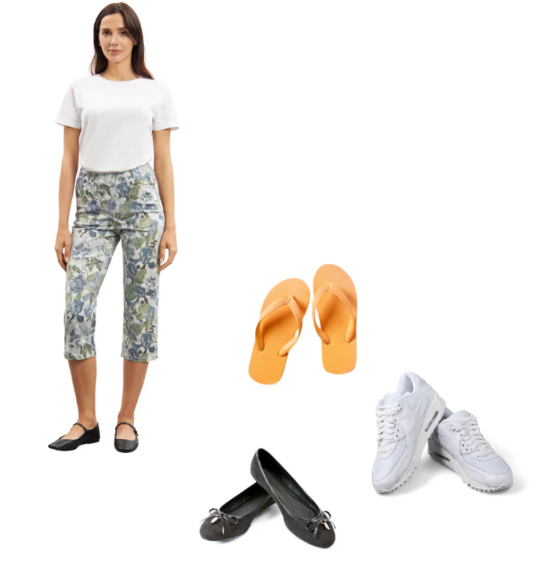 Jalkinevalinnalla on suuri merkitys siihen, miltä caprihoususi näyttävät. Koska housut ovat suhteellisen lyhyet, on hyvä idea valita kengät, jotka korostavat nilkkojasi ja luovat tasapainoa asukokonaisuuteen. Tasaiset kengät, kuten sandaalit tai lenkkarit, antavat rennon ilmeen, joka sopii täydellisesti rentoon kesäpäivään. Jos haluat hienostuneemman ilmeen, korkokengät voivat olla loistava valinta. Korkokengät tuovat sekä eleganssia että saavat jalkasi näyttämään pidemmiltä. Caprihousut sopivat sekä pitkille että lyhyille naisille – lyhyempijalkaisille housut voivat luoda vaikutelman pidemmistä jaloista, erityisesti yhdistettynä korkoihin.