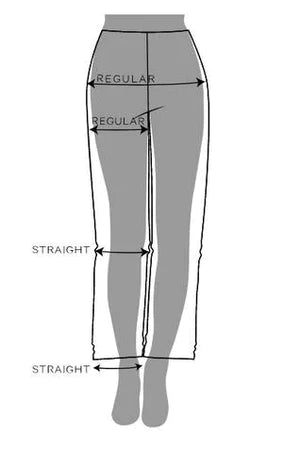 Straight-istuvuus on väljä ja tämän mallisissa housuissa on melkein sama leveys reidestä jalkaan. Kyseessä ovat suorat farkut.